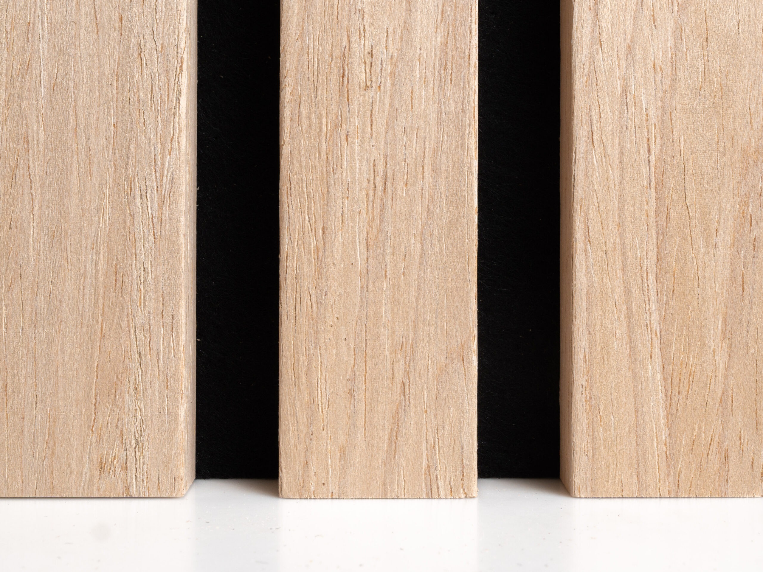 Transform your space effortlessly with our stunning Decorative Slatwall Panels. Embracing a chic natural oak finish and a cosy black felt backing, these panels will completely redefine your interior. More than just looks, these panels play a dual role—decor with acoustic properties – making your house both feel and sound like a home. Sourced in the UK, our panels boast unmatched grain consistency and colour. Elevate your space affordably with our panels – where style meets value seamlessly.